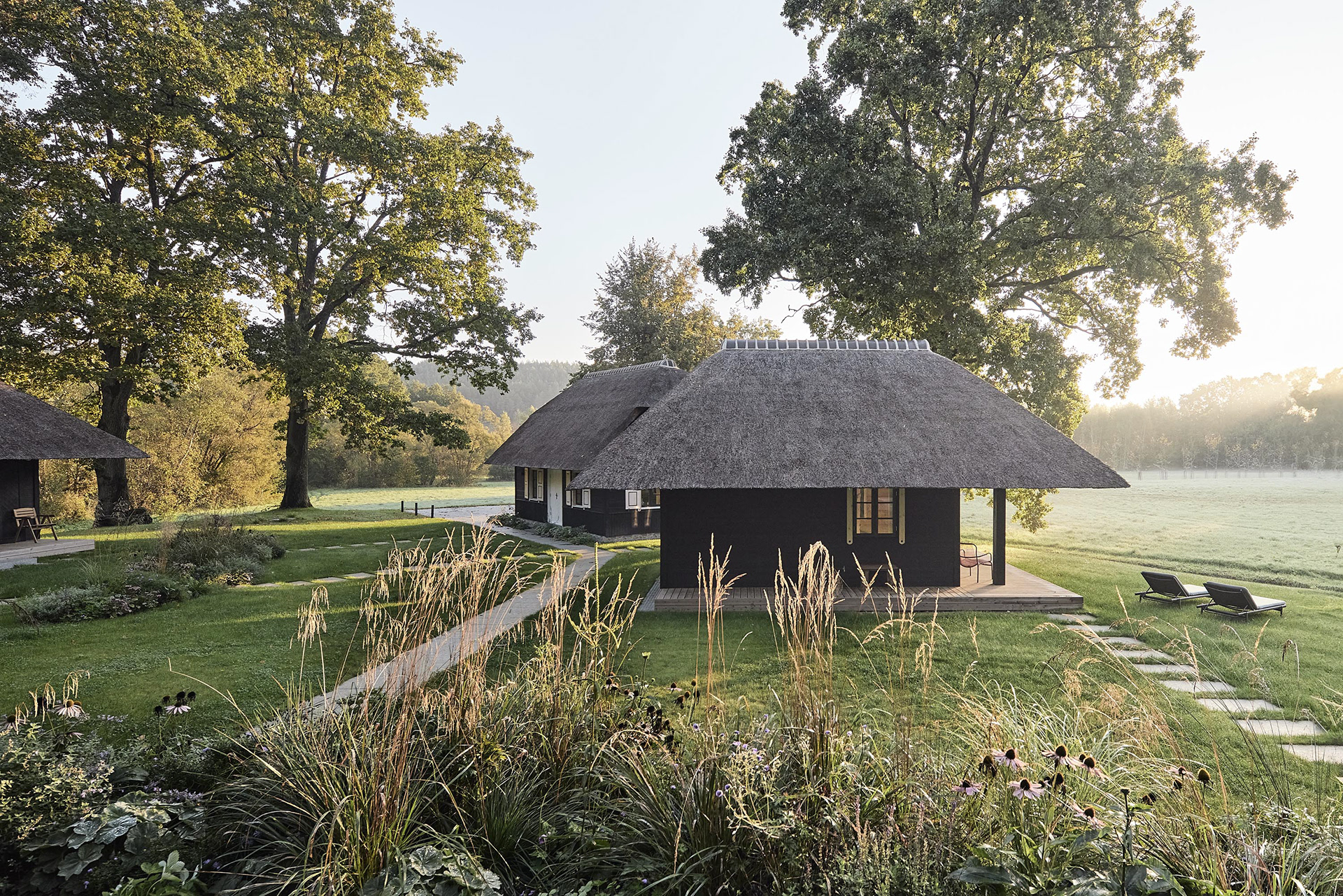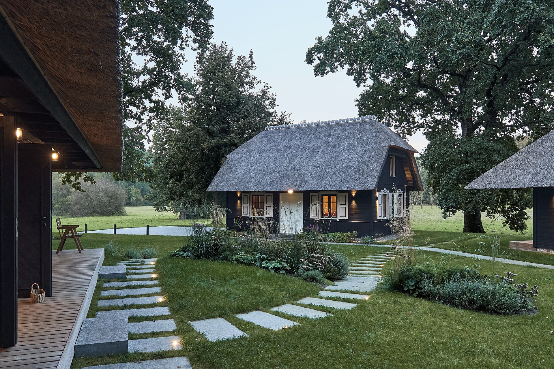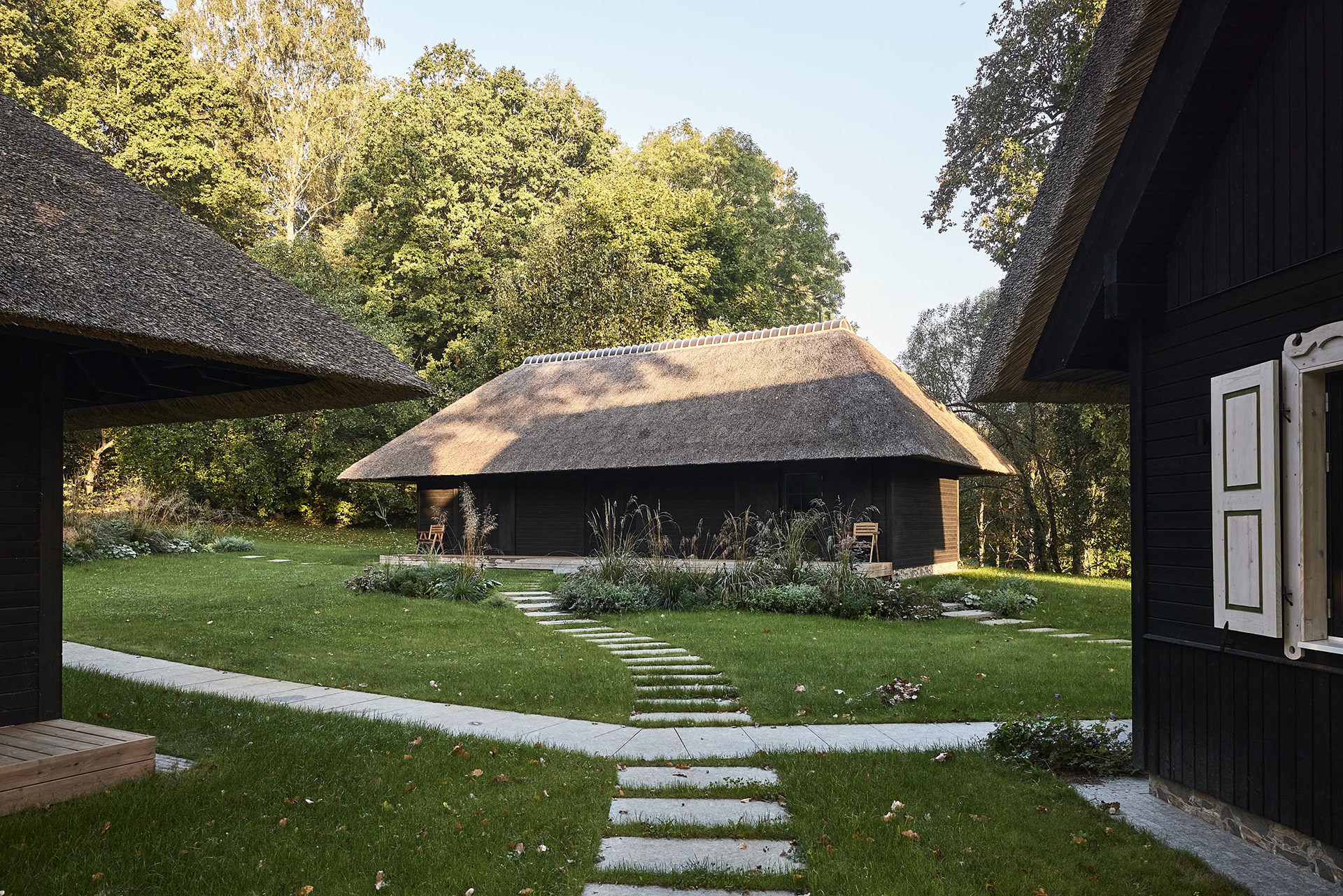 The country house interior seamlessly blends mid-century design with eclectic elements, creating a warm and inviting atmosphere. The space is characterized by its abundant use of natural wood, adding a sense of warmth and texture throughout. Vernacular details, such as handcrafted joinery and traditional motifs, pay homage to the local heritage, while vibrant, colorful accents introduce a playful and contemporary touch. The eclectic mix of furnishings and décor combines modernist shapes with rustic charm, resulting in a space that feels both timeless and cozy. This harmonious blend of styles makes the home a welcoming retreat that celebrates comfort and creativity.