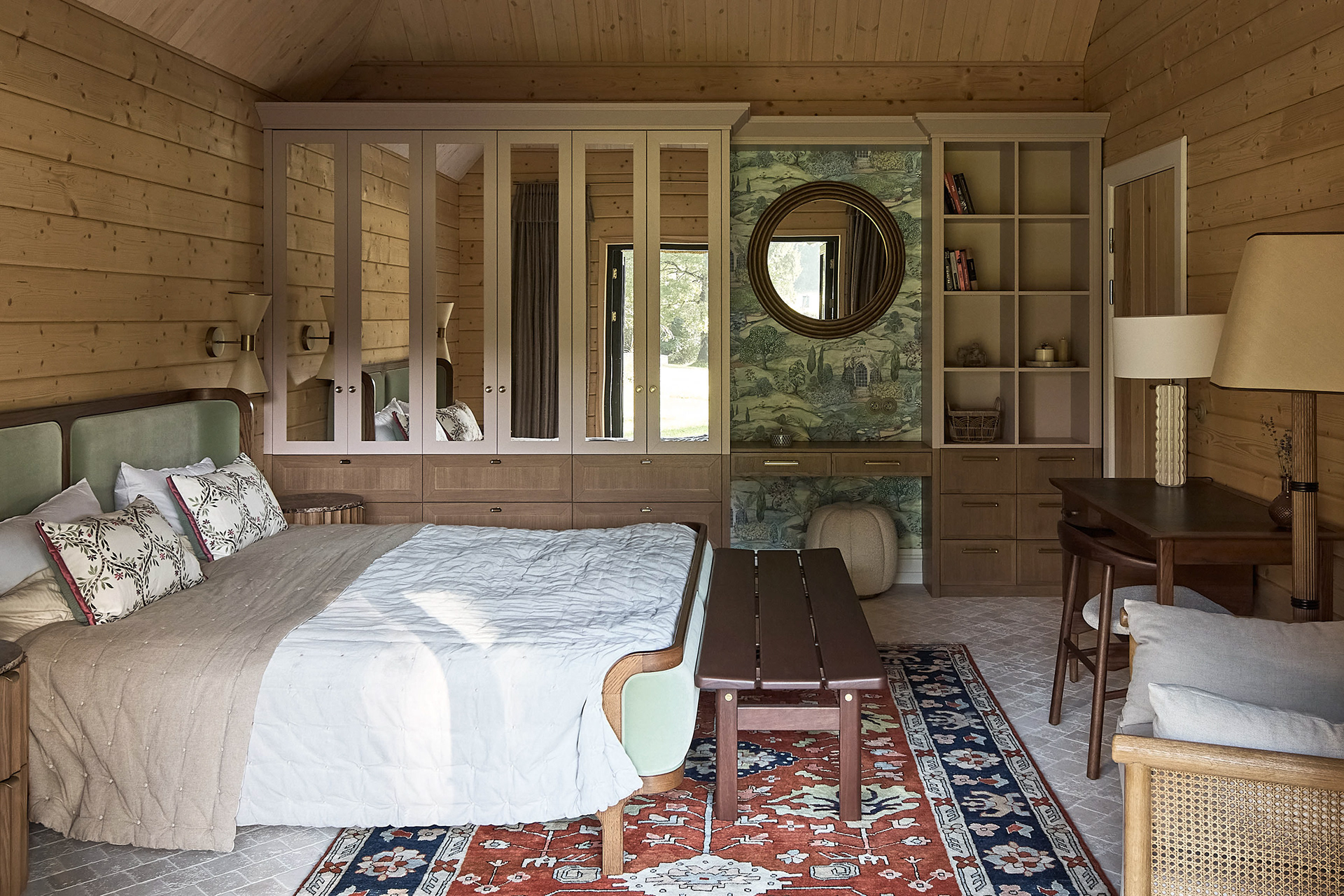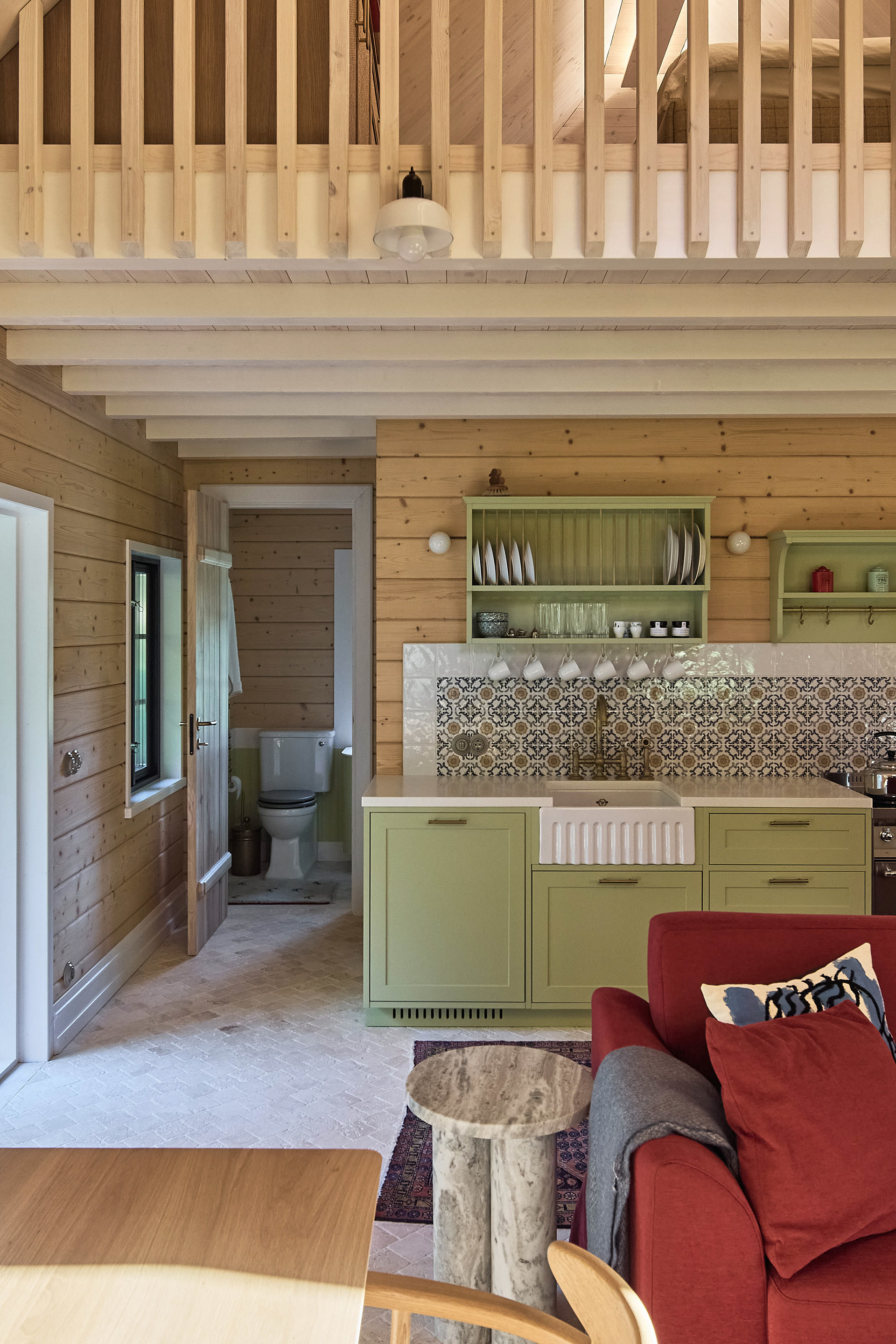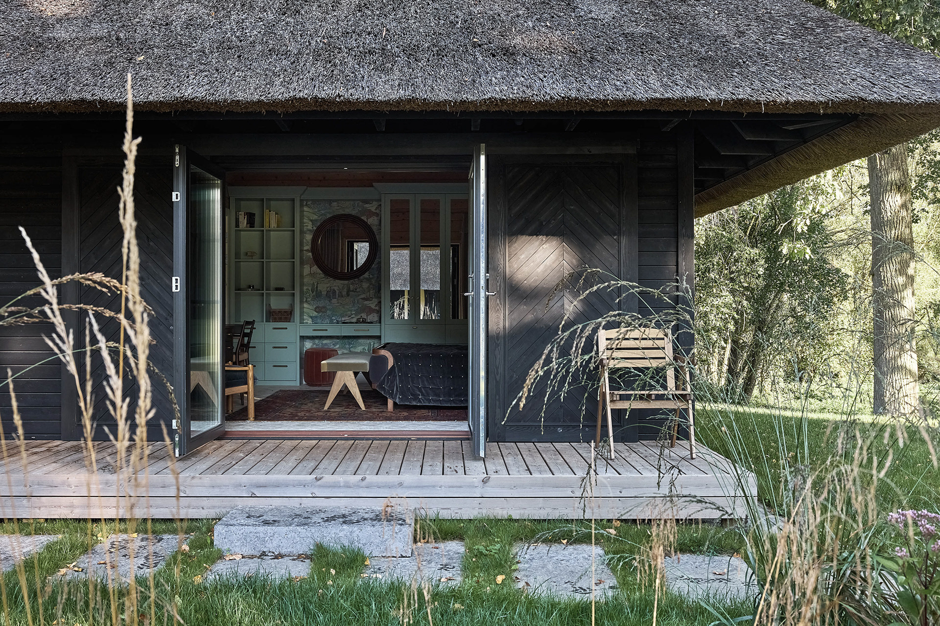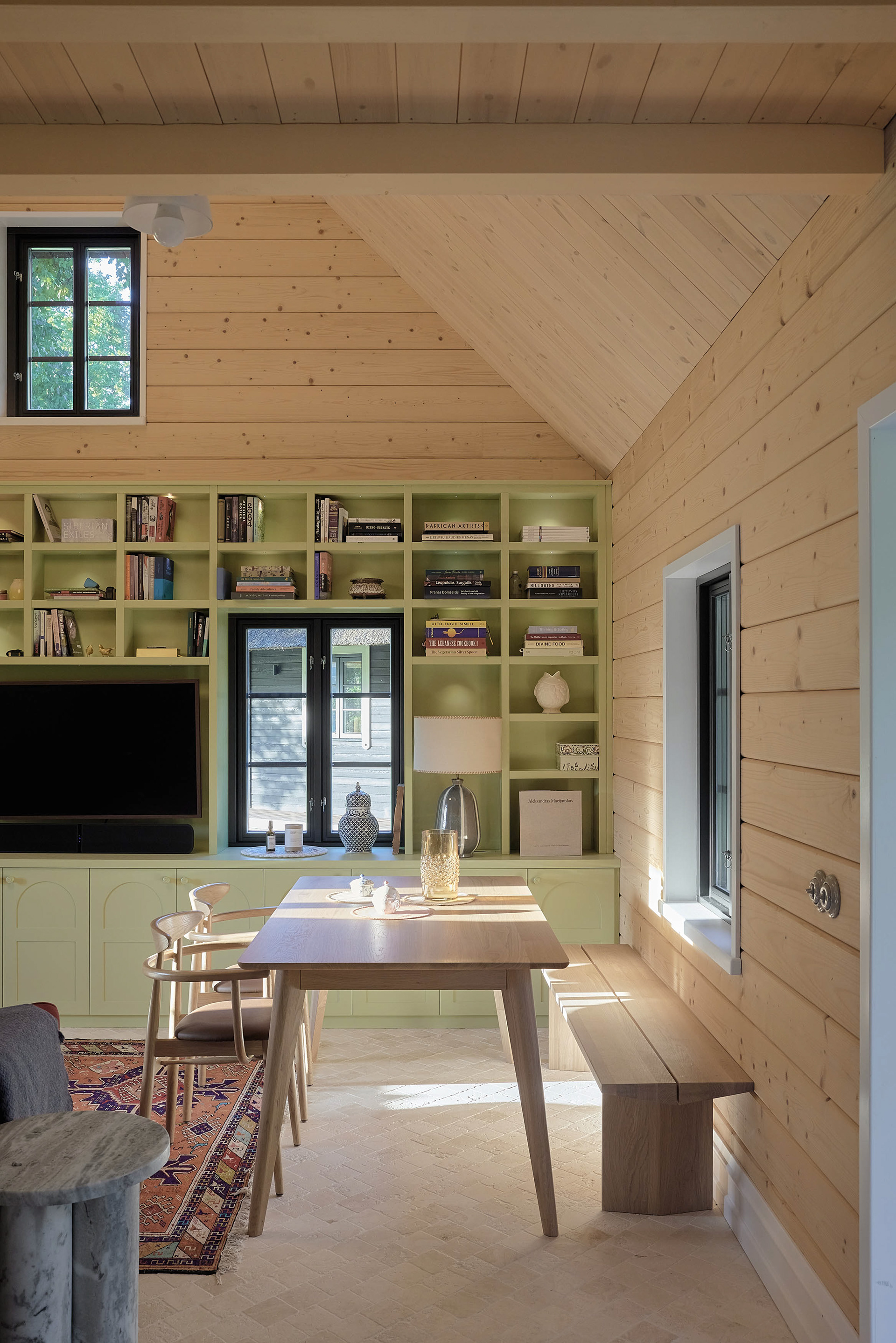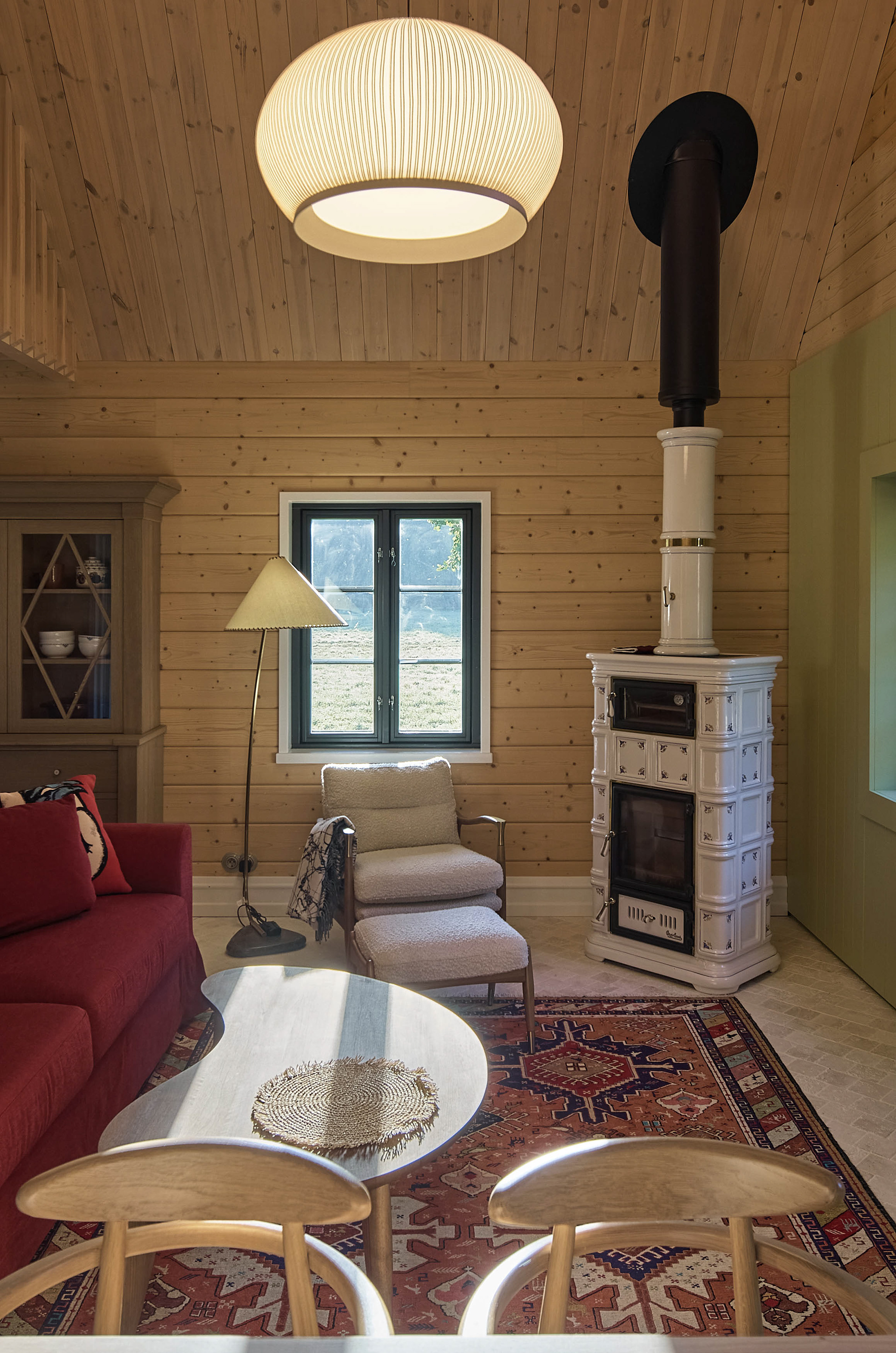 The country house interior seamlessly blends mid-century design with eclectic elements, creating a warm and inviting atmosphere. The space is characterized by its abundant use of natural wood, adding a sense of warmth and texture throughout. Vernacular details, such as handcrafted joinery and traditional motifs, pay homage to the local heritage, while vibrant, colorful accents introduce a playful and contemporary touch. The eclectic mix of furnishings and décor combines modernist shapes with rustic charm, resulting in a space that feels both timeless and cozy. This harmonious blend of styles makes the home a welcoming retreat that celebrates comfort and creativity.